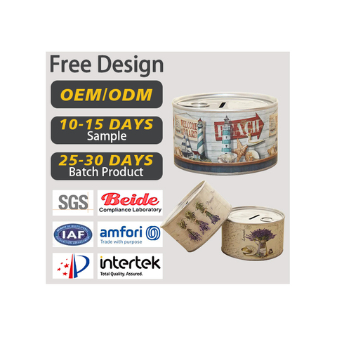 OEM Custom Money Saving Metal Box Runde Münzbank Blechdosen mit personal isiertem Design